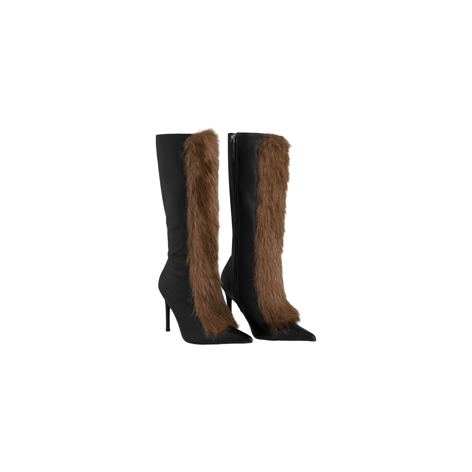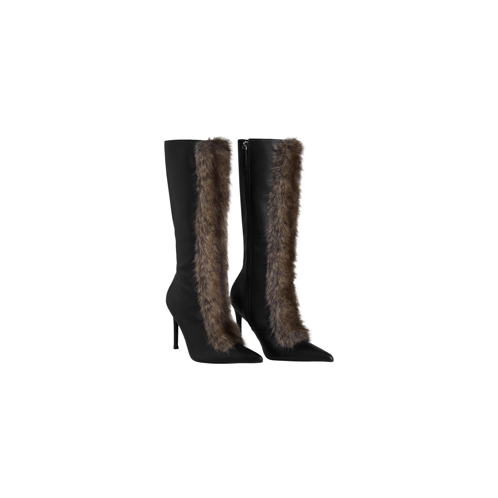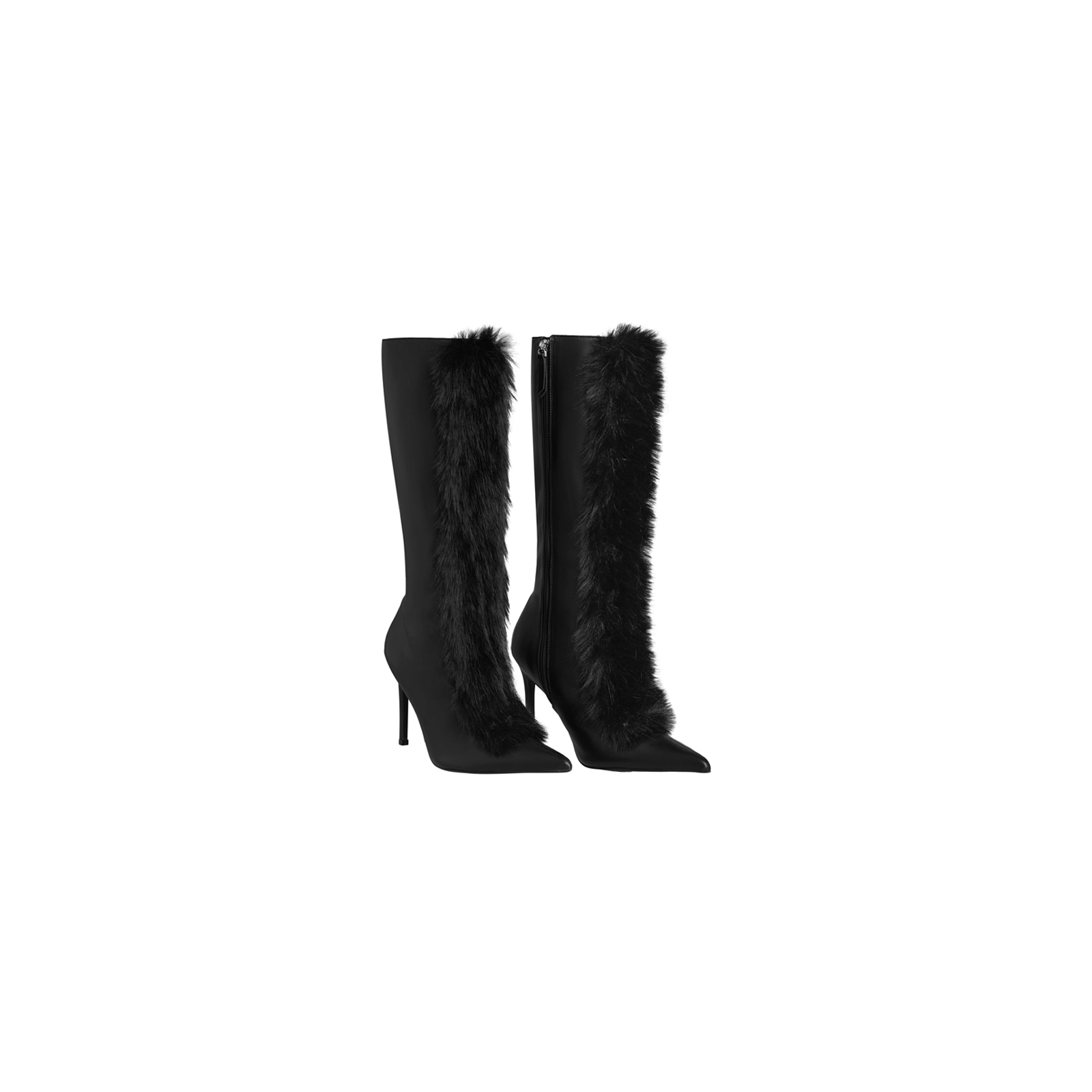 Fur trim bustier corset Boned corset Heart-shaped bust line Mid-hip length Curved side panels Lace-up back with zip closure Hourglass silhouette Fully linedMaterial: